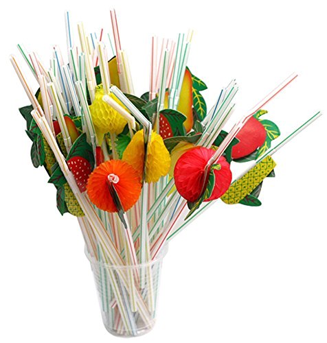 -. Title : RoseSummer 50pcs/pack 3D Fruit Cocktail Drinking Straw Assorted Party BBQ Hawaiian Theme Decoration