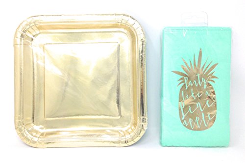 Party Like a Pineapple Shimmering Gold Party Plates and Napkins for 8