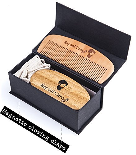 Why choose Repsol Care? Our vision was making a superior beard kit that will answer all your beard needs. Supervised by best quality control and includes: ? Handmade wooden beard comb ? 100% boar bristle beard brush ? Cotton travel bag ? Luxury durable gift box with magnetic closing claps ? Backed up by our 90 day money back guarantee! The beard comb - Our 4"x2.3" handmade beard comb is made out of natural wood and a quality finishing for long lasting. Each comb is crafted with the tender care that will leave your hair feeling smooth at any given time. The comb is double sided and has both thick thin fine tooth that can get through any hair or beard, assuring no snagging or hair pulling like other cheap plastic combs. Great as a mustache comb too. The beard brush - Our 4.7"x2.1" pocket beard brush for men is made out of 100% boar bristles and a natural wooden handle. Natural boar bristles help distribute oil, improve hair texture and massage scalp. Great used with beard oils, balms, waxes and conditioners. Ideal for men beard grooming, softening and styling. This comb works great on any type of hair including long, short, thick, coarse and tangled beard hair. All orders ship from the USA! Packed in a luxury gift box backed by our 90 day money back guarantee - MAKES OUR SET A NO BRAINIER CHOICE FOR YOU! ORDER NOW! cepillo de la barba peine de la barba barba 0 |