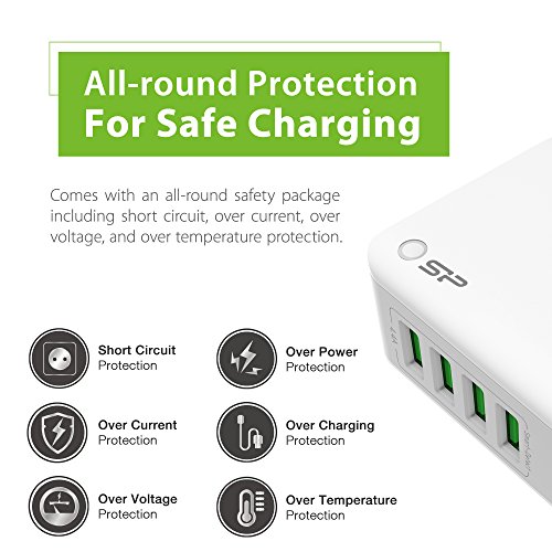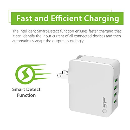 Four USB ports allow simultaneous multiple-device charging. The Smart-Detect function ensures faster and more efficient charging for maximized compatibility.