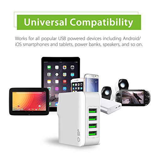 Charge with Universal Compatibility The Boost Charger WC104P works for all popular USB powered devices such as smartphones, tablets (Android and iOS), power banks, speakers, and so on. And it has four USB ports that allow you to charge multiple devices simultaneously.
