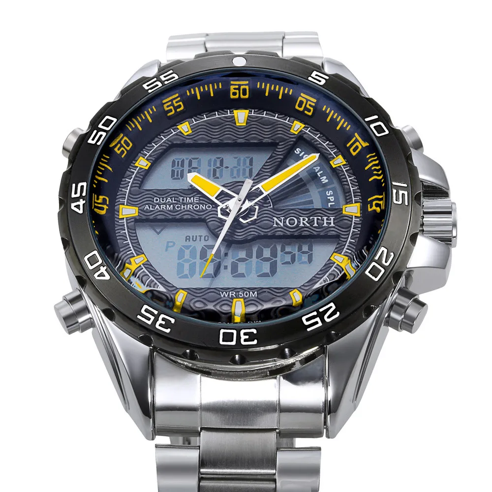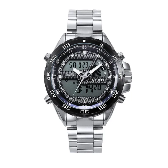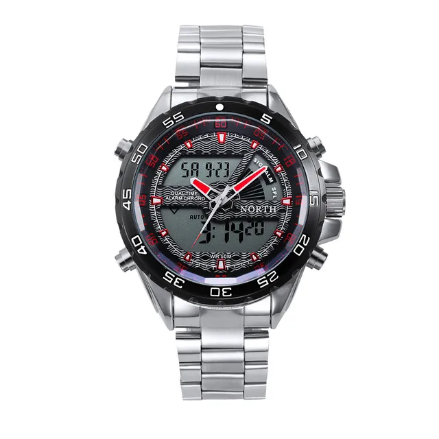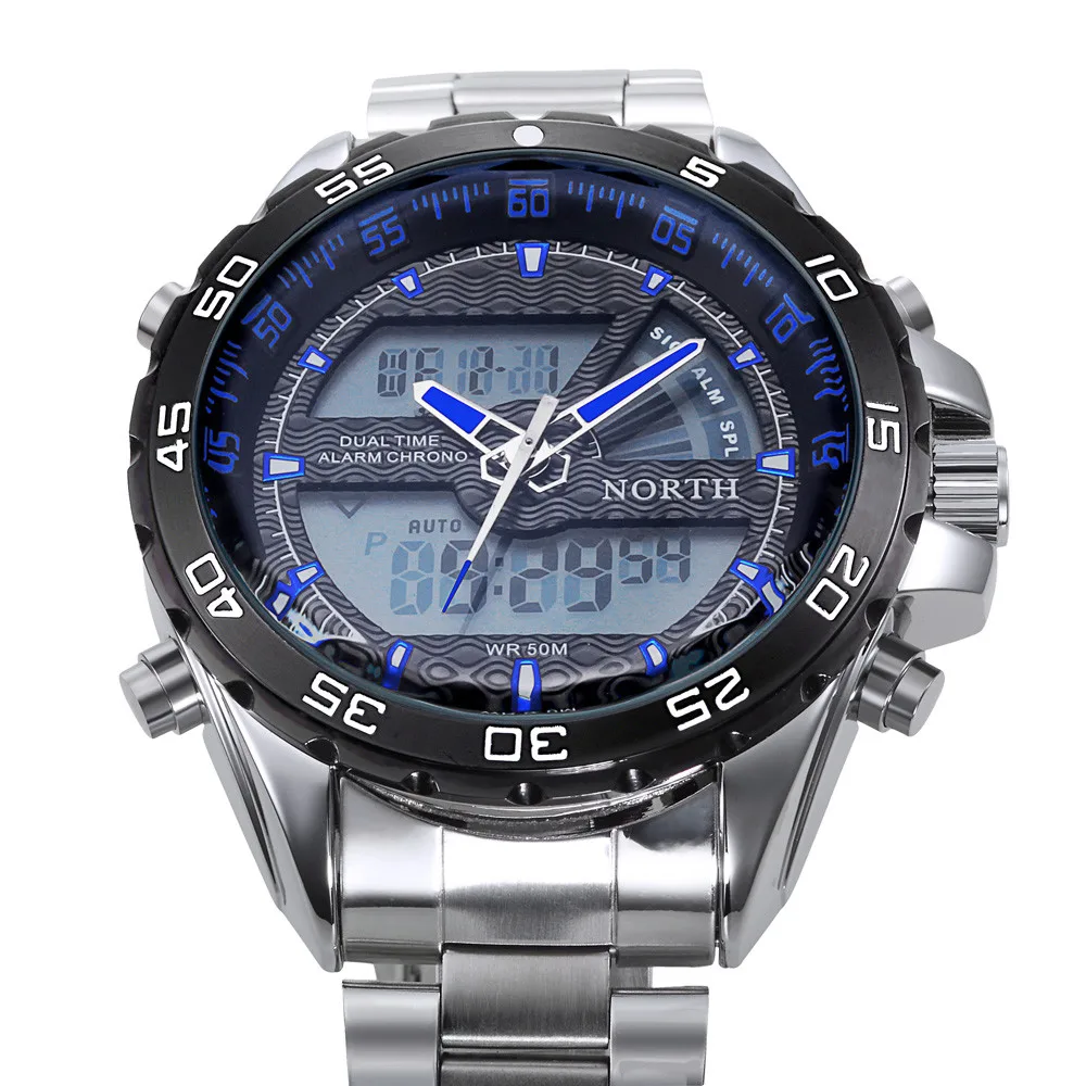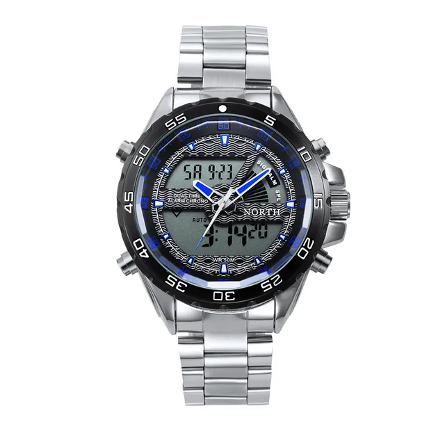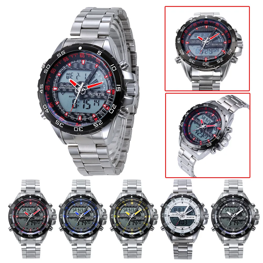 시계 남자 북미 더블 운동 석영 손목 시계 럭셔리 브랜드 스테인레스 스틸 남성 시계 실버 높은 품질 선물 상자