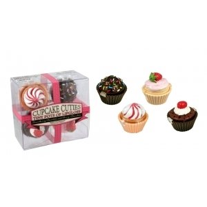 -. Feature : Set comes with 4 different cupcake glosses / Adorable mini lip gloss cakes with rainbow sP.R.Inkles, strawberry swirls, & berry chocolate delights! / Packed in mini four pack cake box - one of each mini cake style. / Parabens & Phthalate Free. / Enriched with Vitamin E.