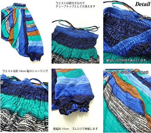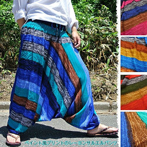 -. Feature : メイン素材:レーヨン100% 生地厚:やや薄~普通 透け感(なし) 肌触り良し / チューブトップも可能なペイント風の柄が印象的なサルエルパンツ。股上の深い個性的な、ゆったりシルエット。 / 吸湿性、吸水性にも優れ涼しく肌触り良いレーヨン素材。 / ウエスト前に紐も付いており、シャーリングウエスト部を胸元まで上げてベアトップとして2wayで楽しめます。 / イベントやダンス、舞台の衣装としてもおすすめです。