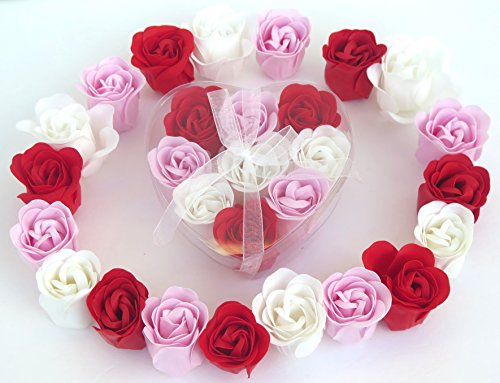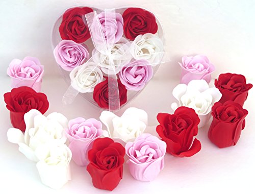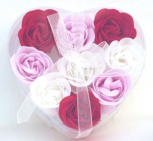 Easter Rose Bath Bomb, Nine Colorful Charming Rose Flowers in a heart gift box. 3Red+3pink+3white, 9go