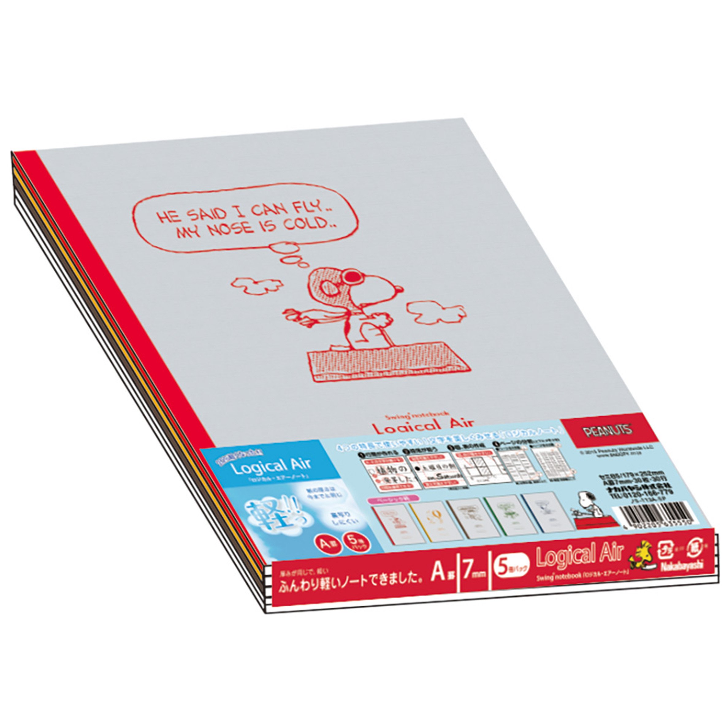 Nakabayashi Co. Ltd. logical air and light notebook five books pack B5 A ruled Snoopy Bruno S-113A-5P