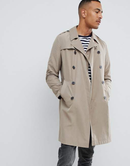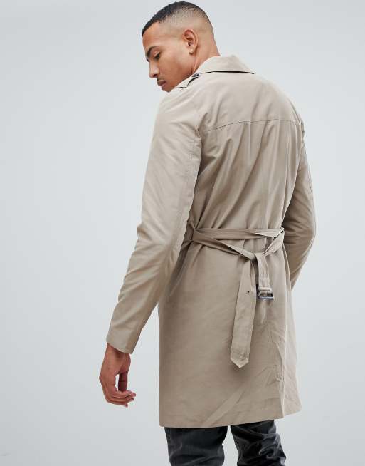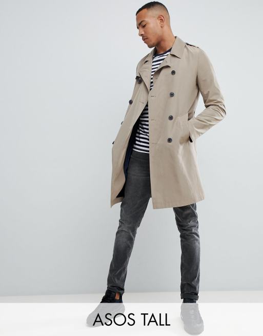 ASOS DESIGN Tall shower resistant trench coat in stone