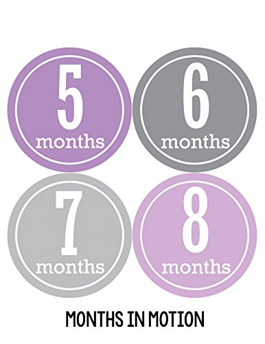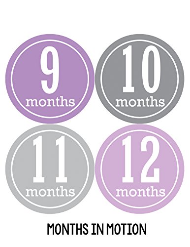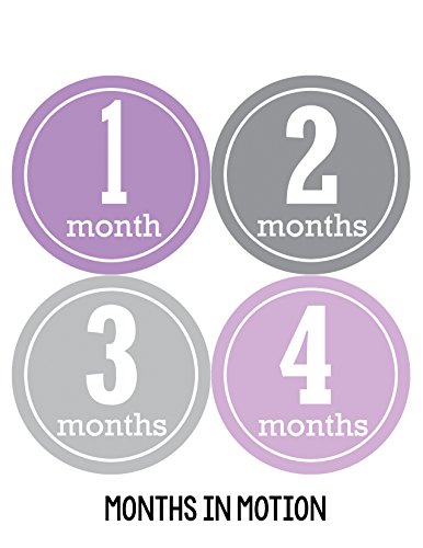 -. Binding : Baby Product -. Brand : Months In Motion -. Color : purple, lilac, lavender -. Department : Baby-girls -. EAN : 0764130836631 -. Feature : Just peel, stick, and take a photo to document your baby's first year! / Makes a wonderful shower gift! / The perfect baby photo prop! / P.R.Inted on white matte sticker so no glare in photos / Includes 12 precut stickers that are approximately 3.93 inch diameter -. Label : Months In Motion -. LegalDisclaimer : Stickers are to be used under adult supervision only. Do not leave stickers on baby unattended. -. Manufacturer : Months In Motion -. Model : 164 -. MPN : 164 -. PackageQuantity : 12 -. PartNumber : 164 -. ProductGroup : Baby Product -. ProductTypeName : BABY_PRODUCT -. Publisher : Months In Motion -. Studio : Months In Motion -. Title : Months in Motion 164 Monthly Baby Stickers Baby Girl Month 1-12 Milestone Sticker -. UPC : 764130836631