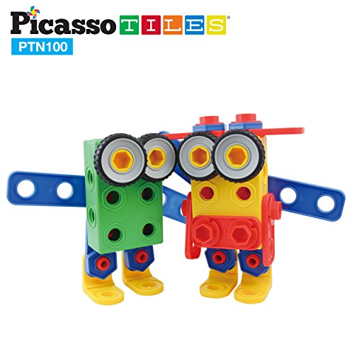 -. Title : PicassoTiles PTN100 100pc Nuts and Bolts Building Block Engineering STEM Set 3D Construction Learning Toy Stacking Educational Blocks w/ Anchors, Motor Wheel Kit, Storage Box Container Free Idea Book