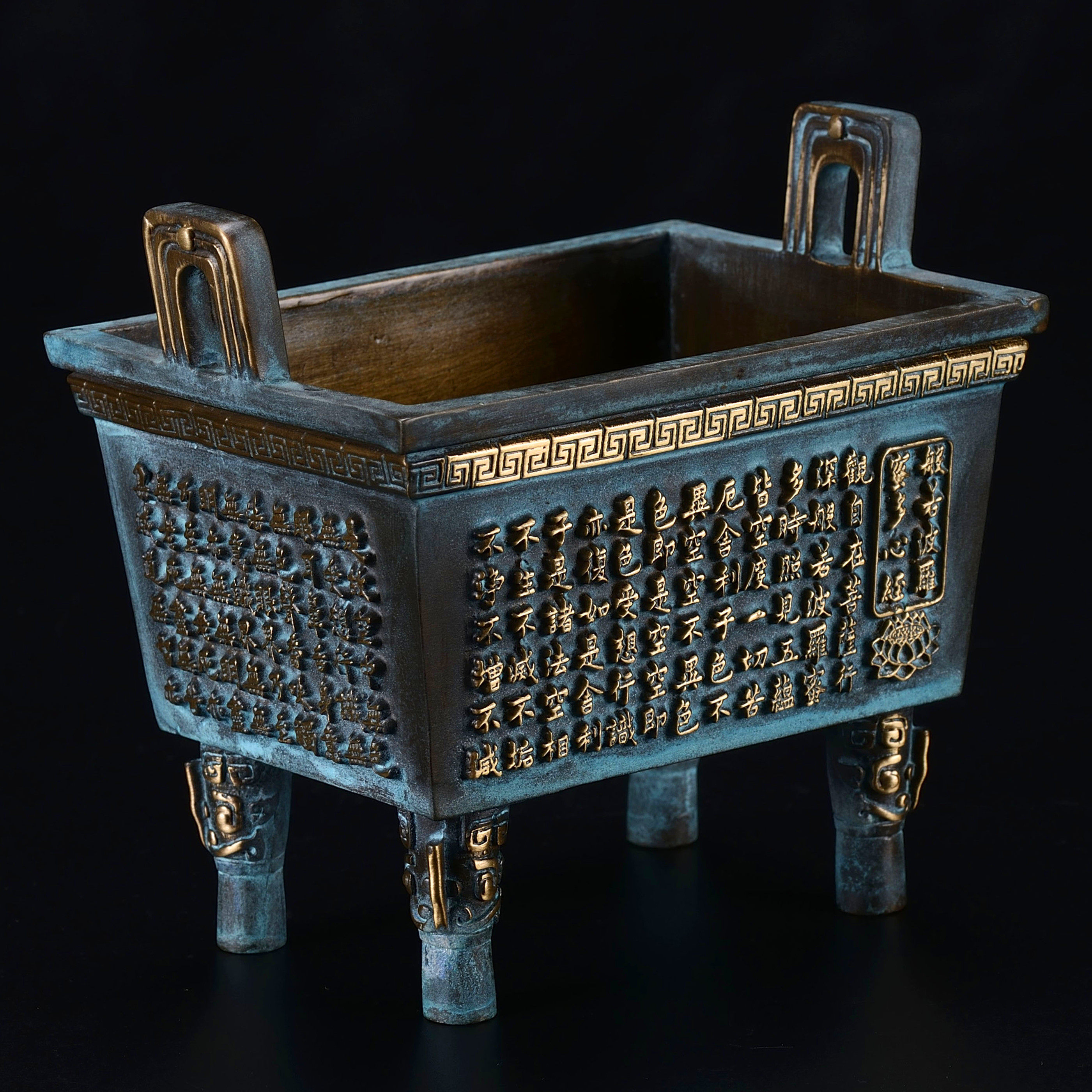 铜鼎是中国传统风水吉祥物,有招财旺宅、事业升腾之功效。本心经财神宝鼎,凸铸有心经和黄财神咒,其招财镇宅、兴旺事业之神奇功效,远胜于一般的铜鼎,是送礼或自用之佳品。