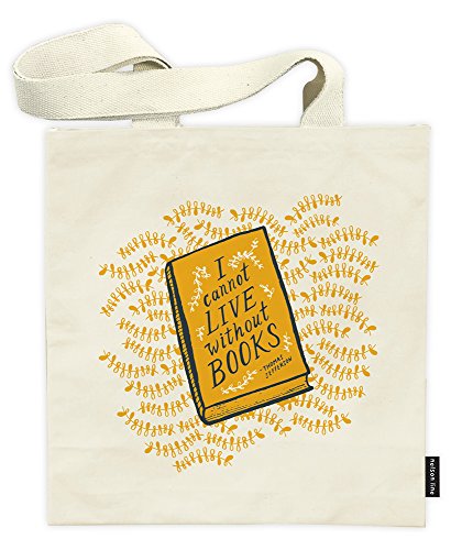 Canvas Tote Bag - 15" x 16" "I Cannot Live Without Books" - Thomas Jefferson