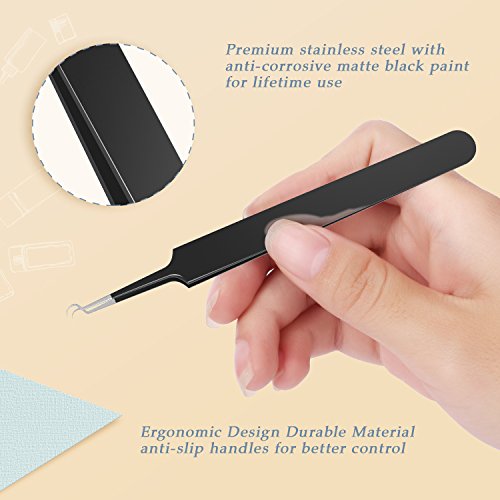 COMFORTABLE WITH COATING HANDLE: With the coating handle, you will feel very comfortable to hold the tweezer extractor tool and avoid injury and skin reaction. The perfect tension allows you to freely do tweezing and ingrown hairs treatment for you.