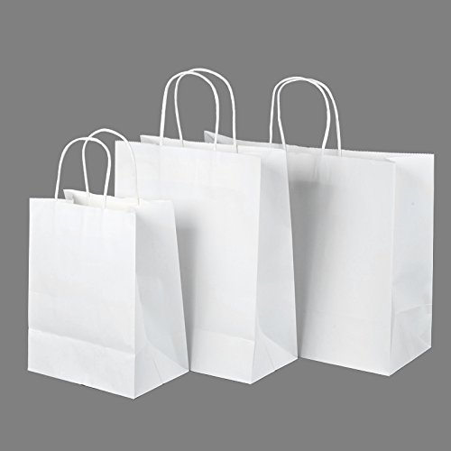 - Multipurpose Paper Bags: Size: 8"x4.75"x10"-10"x5"x13"-16"x6"x12" 50pc Each Size,pack of 150pcs. Halulu craft paper bags should be your first choice. These plain white paper bags can be used for a variety of purposes. Use them to store clothes or shoes, or to organize your wardrobe, or even as shopping and gift bags.