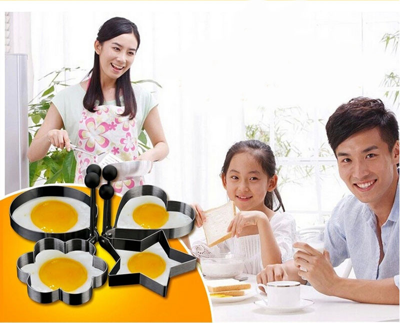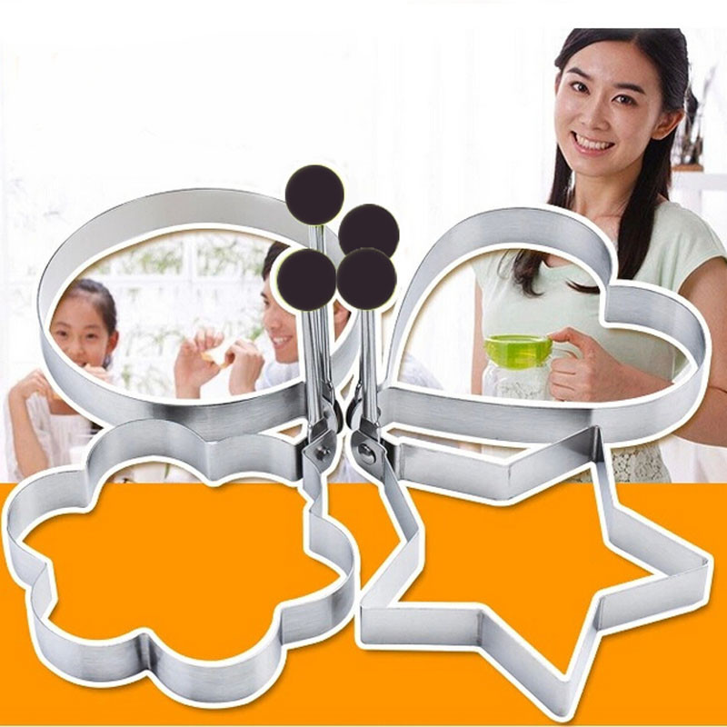 4PC Thick Stainless Steel Omelette Mold Control Rice Omelette Mold Love & Happy Kitchen Time forma de silicone Smile