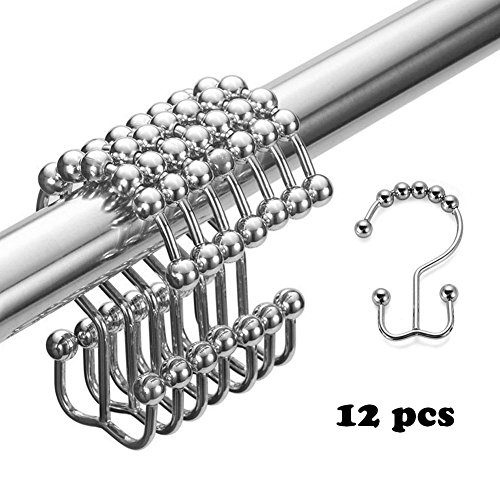 Cren® Double Glide Shower Curtain Hooks Ring, Chrome, Set of 12