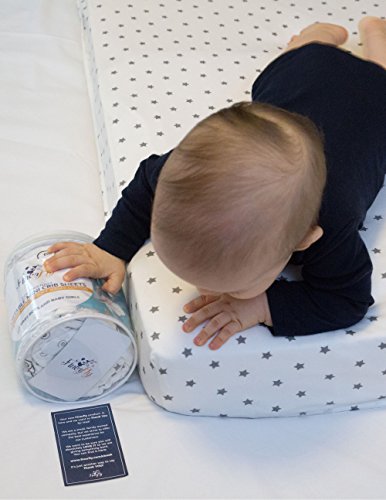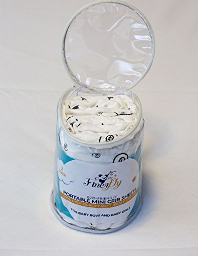 Studio : FINERFLY Publisher : FINERFLY Binding : Baby Product Product Description Pamper your little one by simply choosing the Finerfly premium sheets! Made of a durable material with reinforced stitches, lightweight and antimicrobial, it's the best choice for a restful sleep. Easy to put on and take off due to its fully elasticized edges, it lies perfectly flat. Machine washable, you can clean it effortlessly. It doesn't peel, shrink or discolor, becoming even softer with every wash cycle. Add to cart and get: 2 x crib sheet Material: cotton Size: 24 x 38 x 5 inch Weight per sheet: 4.94 oz (140 g) Color: white, grey and black with stars and snails patterns Packaging: nicely designed cylindrical clear plastic bag Package weight: 11.29 oz (320 g) 1 x eBook for a healthy and happy New-Born 0
