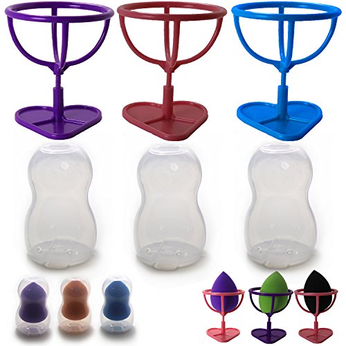 Beauty Makeup Sponge Blender Holder Dryer Organizer Rack Puff Display Stands and On The Go Storage Egg Carrying Cases 6, 3 of transparent white plus 3...