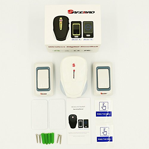 -. Title : Safebao Wireless Doorbell Kit Waterproof Push Button Door Bell with 1 Transmitter and 2 Plug in Receiver for Home Office