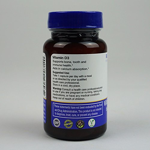 -. Feature : SUPPORTS TEETH, BONE AND HEALTH: Beneficial for people living in areas with little sun exposure, people who regularly wear sunscreen, people following a vegetarian or vegan diet, people with darker skin pigmentation, and people older in age. / AIDS IN CALCIUM ABSORPTION: Vitamin D3 plays a critical role in bone health. It supports the growth and maintenance of bones by enabling efficient absorption of Calcium in the small intestine. / PREFERRED FORM OF VITAMIN D: Vitamin D3, also known as cholecalciferol, is a potent form of vitamin D that our bodies naturally produce when exposed to sunlight. It is the form of Vitamin D that is most beneficial to humans. / PURE INGREDIENTS, POWERED BY SCIENCE: The only filler we use in our supplements is organic potato starch, so you get more of what you want without the unnecessary excipients. Our products have no additives or preservatives. / SUITABLE FOR VEGANS: Our capsules are pure inside and out: vegetarian, no lactose, no gluten, no preservatives, no additives, no aritificial fillers, no rice and with minimal excipients. BPA-free bottle provides protection from heat, light, and air