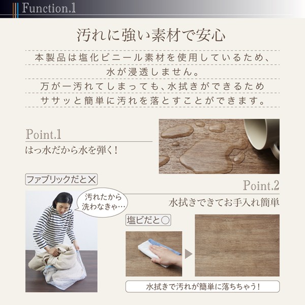 ※家具の脚ゴムやゴムマット等に含まれる老化防止剤、家具の塗料、防腐剤等の薬剤によって本製品が汚染され変色を招く可能性があります。
