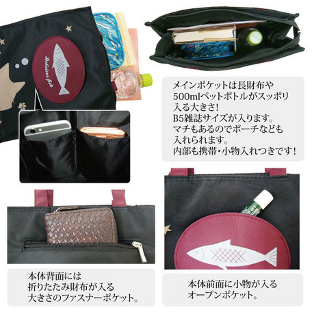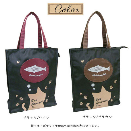 ねこのプリントがかわいいトートバッグです。