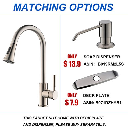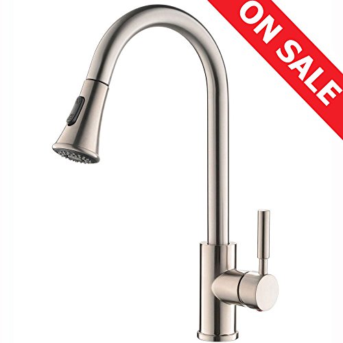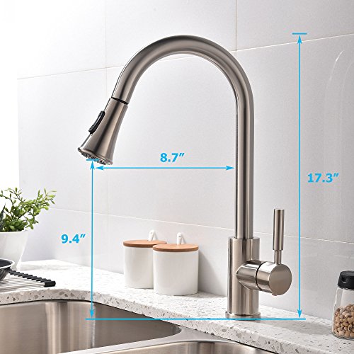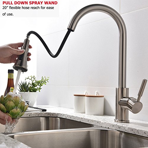 KINGO HOME Commercial High Arch Stainless Steel Single Lever Brushed Nickel Pull Down Sprayer Kitchen Faucet, Kitchen Sink Faucet with Dual Function Spout Sprayer