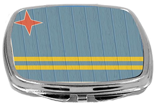 Rikki Knight Compact Mirror on Distressed Wood Design, Aruba Flag, 3 Ounce