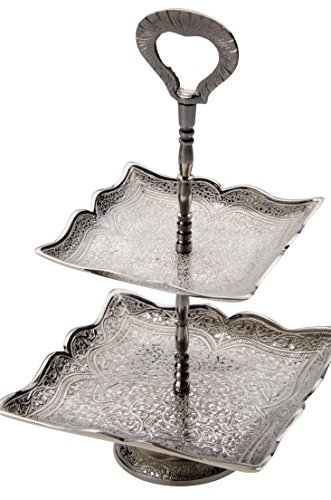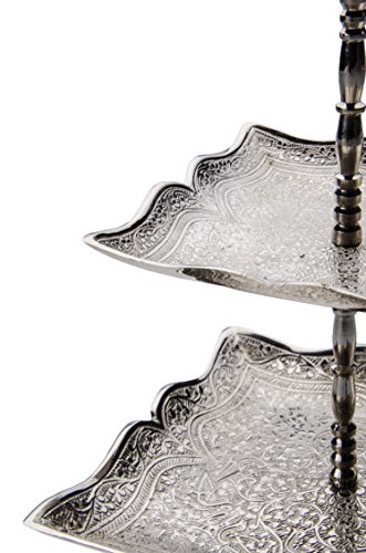 Studio : Marrakesch Orient Mediterran Interior ® Publisher : Marrakesch Orient Mediterran Interior ® Binding : Kitchen Product Description Indian 3-tier Cake Stand Ayat Each one of these trays is a unique work of art, thanks to the artisan who handcrafts and hand etches them one at a time. We offer here a traditional oriental cake stand made of brass with 2 tiers, so that you can serve your snacks, chocolates, fruits or pastries,. 2 wonderfully decorated trays with traditional Indian motifs. They are silver colored, firmly processed in an oriental flair, with great attention to details. - Color: Silver-colored