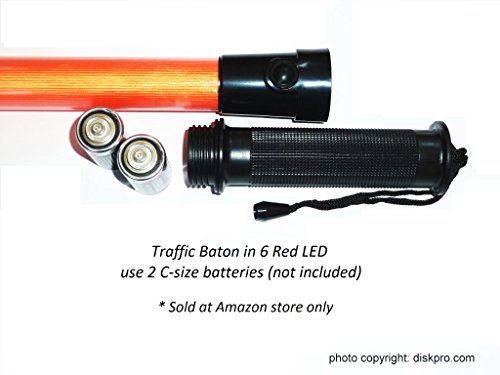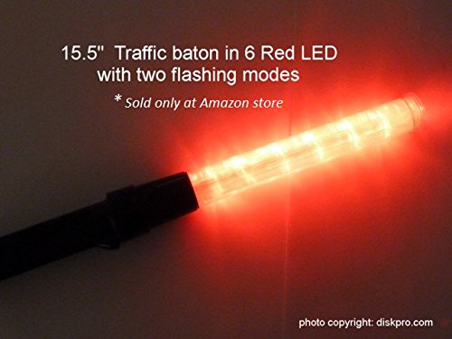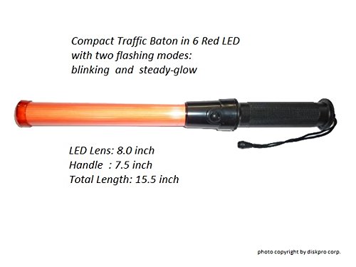 15.5 inch Traffic Safety Baton Light, in 6 Red LED with Two Flashing modes (Blinking and Steady-glow), uses 2 C-size battery. Good for Parking Guides and Dog Walkers Safety.