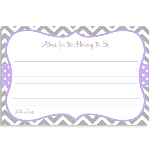 Baby Shower, Advice to Mommy, Purple, Chevron Stripes, Girls, Lavender, It's A Girl, Polka Dots, Gray, Grey, Sprinkle, Mommy to Be, Set of 24 Printed Note...