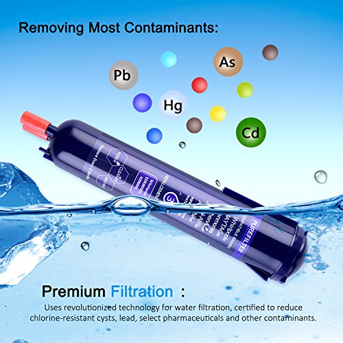 - 【GREAT TASTING AND HEALTHY WATER】: GREAT TASTING AND HEALTHY WATER--This water filter is certified to deliver clean, fresh and healthy water,reduces most contaminants like pharmaceuticals, waterborne parasites,lead, benzene,mercury, and asbestos, providing great tasting water and ice for your family.