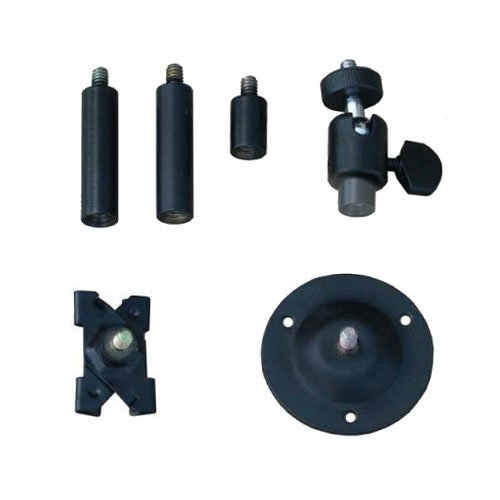 -. Feature : 360 degrees turn and rotation, 90 degrees tilt / 1/4" / 20 threads throughout / 12 different combinations, customize to 2", 4" or 6" length / Metal construction, all parts interchangeable. T-bar drop ceiling clip included / Package included: 2 x metal security camera brackets