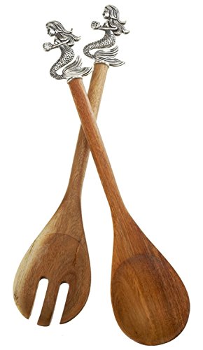 Mermaid Icons Wooden and Metal Salad Servers Set