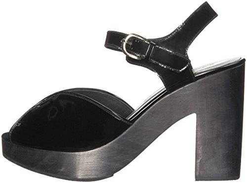 Product DescriptionOpen toe clog. vamp composed of rounded panels, ankle strap with buckle closure. wood heel and platform. crepe sole.0