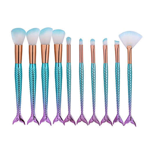 Makeup Brushes,Kasla 10PCS Professional Cute Foundation Mermaid Blending Cosmetic Eyeshadow Makeup Brush Set