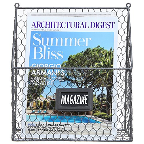 Black Chicken Wire Design Metal Storage Basket / Wall Mounted Magazine & Newspaper Organizer Rack