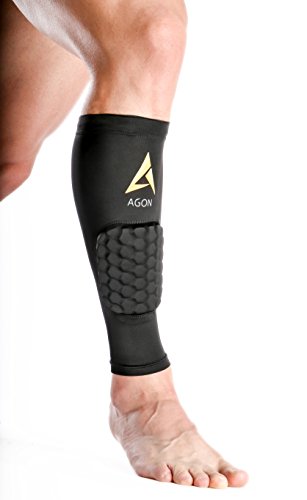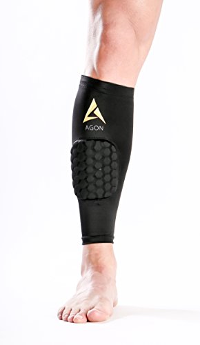 -. Binding : Misc. -. Brand : Agon -. Color : Black -. Feature : SOLD AS SINGLE. You'll receive 1 (Single) Calf compression sleeve. Benefits of compression sleeve: / According to research conducted on compression sleeves, after an optimum compression the arteries walls dilate that helps in increasing the blood flow. / During activity the arterial blood flow increases by 40% and during recovery it reaches 30%. / This actually means higher amount of nutrients pass through your body during that time. During compression, the veins constrict and thus the velocity of the blood flowing through / them is significantly increased. Thus, the blood flows back to heart more quickly, decreasing chances of fatigue and lethargy. -. IsAdultProduct : 0 -. Label : Agon -. Manufacturer : Agon -. MPN : AGONCALF -. PackageQuantity : 1 -. PartNumber : AGONCALF -. ProductGroup : Sports -. ProductTypeName : SPORTING_GOODS -. Publisher : Agon -. Studio : Agon -. Title : Agon Calf Compression - SINGLE SLEEVE With Padding Brace Support Shin Guard
