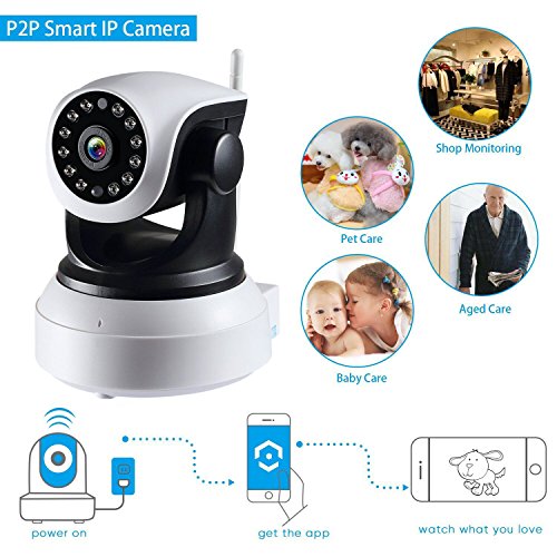 Nexgadget NexGadget IP Kamera HD 720P WiFi Uberwachungskamera, P2P, Sicherheitskamera mit 2-Wege Audio Kanal, Videoaufzeichnung und Gerauscherkennung, Bewegungserkennung horizontal / vertika