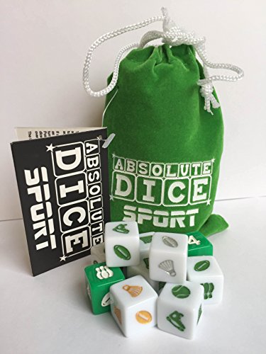 Studio : Absolute Dice Publisher : Absolute Dice Binding : Toy Product Description Like Sport then you'll love this. Great game in a simple format that everyone can enjoy. Roll all the dice to start. A Category Die denotes which category of Sporty icons the player needs to accumulate (Skate, Ball, Skittles etc) and the Number Die denotes how many turns a player has to achieve their target. The first player to score 101 points wins the game. Absolute Dice Sport comes in a lovely velvet pouch with a drawstring closure, lightweight and ideal to slip into a bag or pocket for travel or holidays. No complicated rules or special score sheets. It's easy, if you can count, you can play. Have Fun. 0