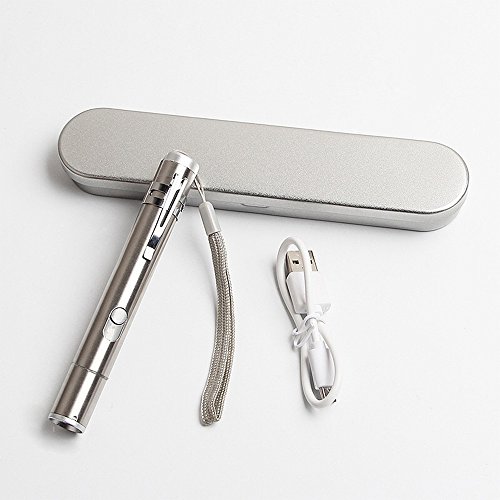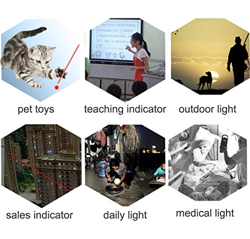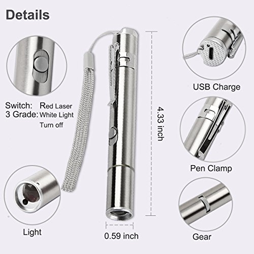 Studio : Onyle Publisher : Onyle Product Description More Functions:it Not just a red laser, with the bonus of being a flashlight and 5 kind of light patterns. Laser light is bright. More Fun: 5 Red Light Patterns,The red dot, cheering thumb,smile,butterfly and insect. To make pet more exciting when play. More Convenience: The button is a switch, not a push, so you don't have to hold it down the whole time you are playing with the cat. You can switch between the different modes with a slide of the switch, it is handy to slip in pocket during evening cat/dog walks, Mini White flashlight also for your daily use,The Weather Resistant will make it more convenient when at outdoor. USB Rechargeable, No batteries!!!?No need to replace batterie. Details Lightly Waterproof Design,but it can not be put in water directly LED life: 10,000 hours Material: Aluminum alloy shell Plastic Color: Silver
