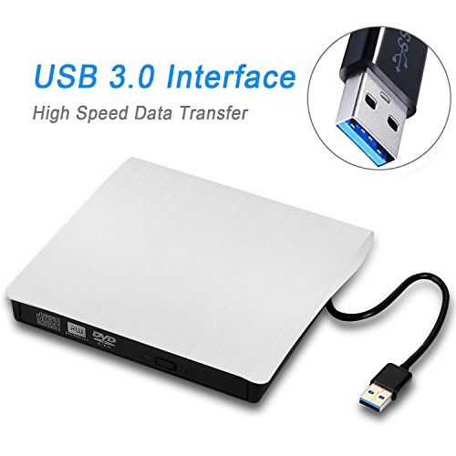 External DVD Drive USB 3.0 External DVD CD Drive Burner Superdrive Ultra Slim for PC Mac Macbook Pro/ Air iMac Laptop (White)