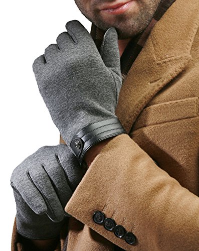 Mandy's Men's Autumn Winter Plush Lining Driving Button Gloves Touch Screen (one size fit most,...