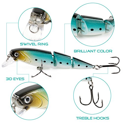 Fishing Lures Multi-Jointed Wobbler Crankbait Minnow and Popper Diving Topwater Lure with Treble Hooks for Bass Trout Walleye Freshwater Saltwater Swimbaits