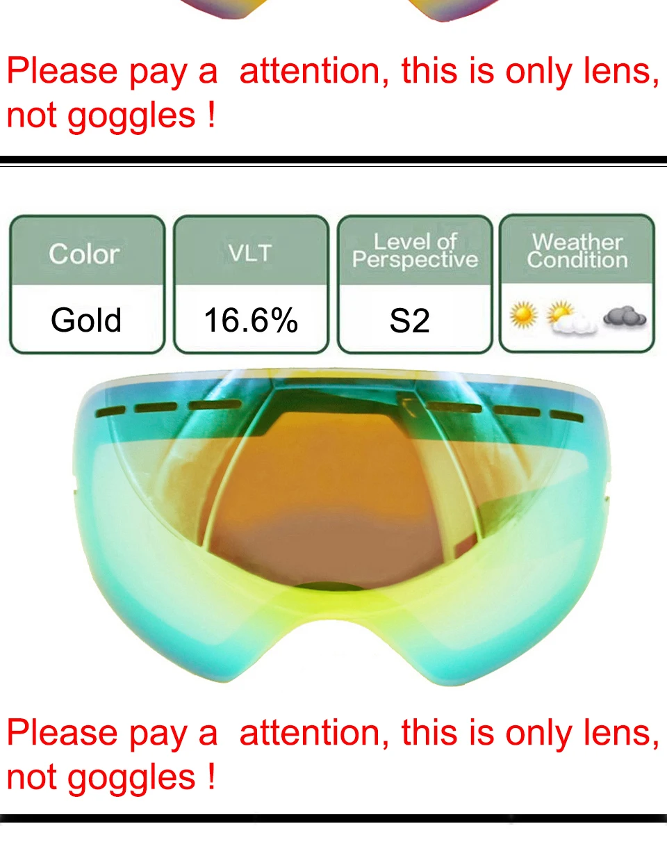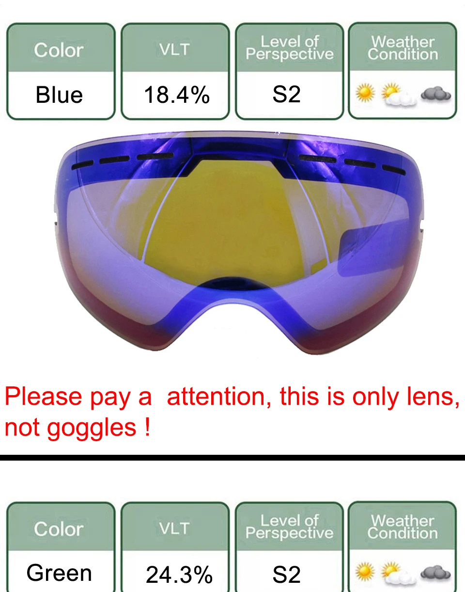 Package:Only goggles lens (not include the goggles frame)
