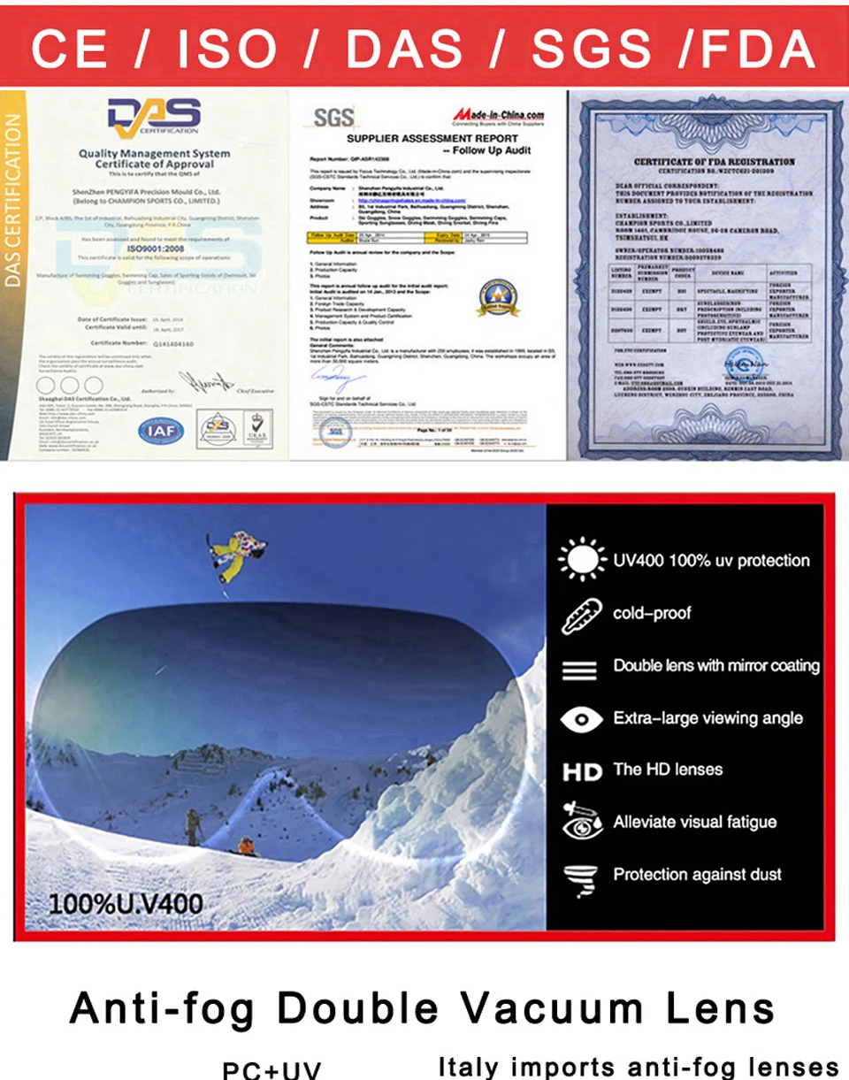 Feature:UV400 Protection, Mirror Coating, Anti-fog