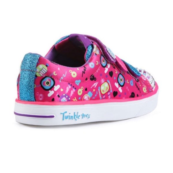 스케쳐스 아동의 대표 라이트 슈즈, 트윙클토 제품입니다. 17FW 시즌부터 새롭게 선보였던 트윙클 브리즈 아웃솔로 무게가 가벼워진 EVA소재의 경량성 업그레이드 제품입니다. 트윙클토만의 앞코 범퍼에 다양한 컬러의 큐빅 디테일과 귀여운 로보트 프린트가 돋보이는 제품입니다.충격흡수 미드솔과 유연성이 우수한 아웃솔로 우수한 착화감을 제공합니다. (배터리 평균수명 3개월 / 연속 60시간 / ON,OFF 스위치기능)