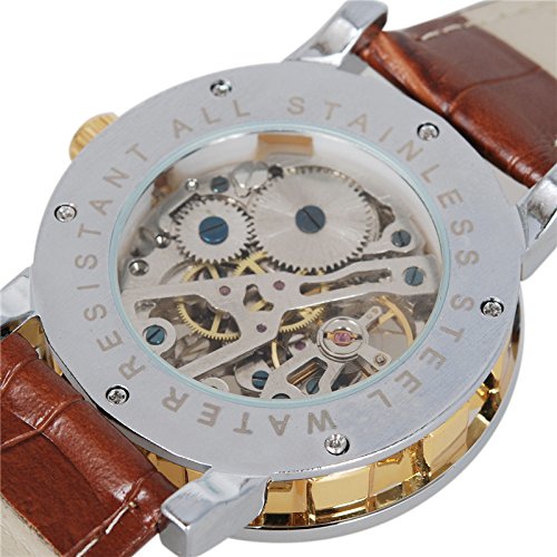 -. Title : GuTe出品 スケルトン スティームパンク 男女 可愛らしい スタイリッシュ 革バンド ゴージャス カジュアル アンティーク風 ビンテージ ゴールド 手巻き腕時計