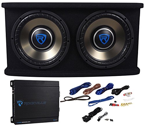 Rockville RVSPL10.2 Dual 10" 1500w Car Subwoofer+Sub Box+Amp+Wires Bass Package