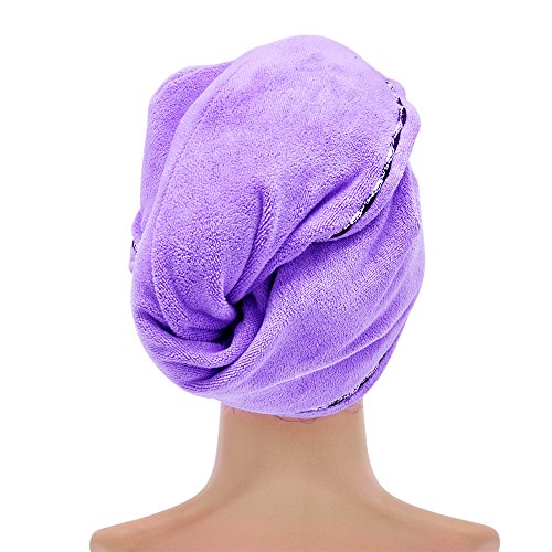 - ❤Attactive Features:①Easy Towel:Dry your long hair in a natural way and 3 simple steps instead of electric hair blower:No slipping , no dripping. After washing your hair, wrap it in the towel and secure it with the button. You can be sure the hair towel will not slipping off.②Roomy top hat: elastic around the edge and large roomy top could make your long curly hair in easily, fit most people with thick or long hair.