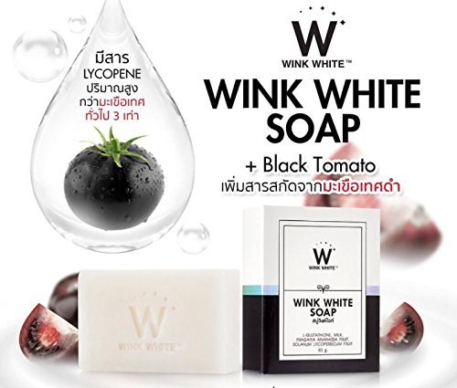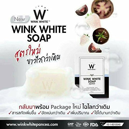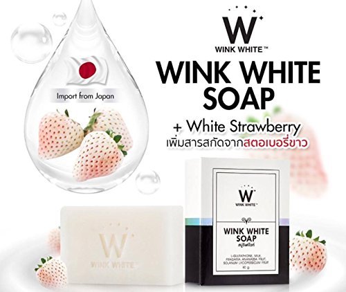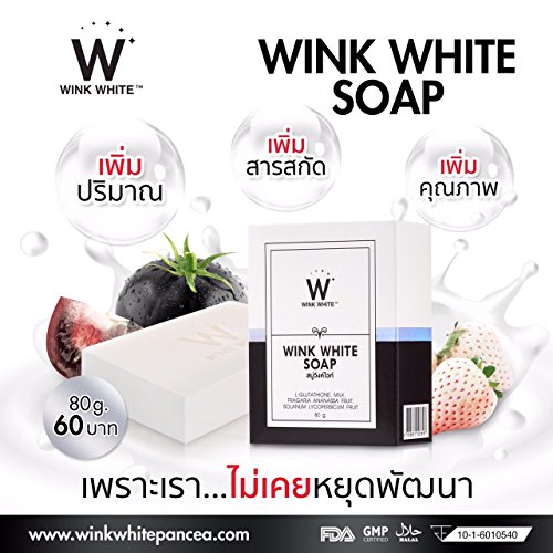 -. Binding : Misc. -. Brand : Madam A -. Color : White -. EAN : 0613003961263 -. Feature : Wink White soap + White Strawberry for Whitening Skin / Wink White soap is used for facial and body cleansing / Which formulated by a mixture of L Glutathione, goat milk and extracted / Vitamins from black tomatoes and white strawberries. / It helps cleansing and whitening skin. FDA Approved: 10-1-6010540 -. IsAdultProduct : 0 -. Label : WINK WHITE -. Manufacturer : WINK WHITE -. MPN : WINK WHITE -. PackageQuantity : 1 -. PartNumber : WINK WHITE -. ProductGroup : Beauty -. ProductTypeName : BEAUTY -. Publisher : WINK WHITE -. Studio : WINK WHITE -. Title : NEW!! 100% Authentic WINK WHITE SOAP new formula Skin Body Whitening can be very fast double white+++Thai, 1 Bar x 80g. by Madam A -. UPC : 613003961263